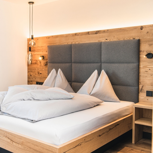 Nelle nostre 12 accoglienti camere matrimoniali, il relax e il benessere in vacanza sono una priorità assoluta. Le camere, arredate con amore, sono dotate di caldi elementi in legno e hanno un balcone con una magnifica vista panoramica sull’imponente Gruppo del Sella e sul Sassolungo, la montagna della Val Gardena.